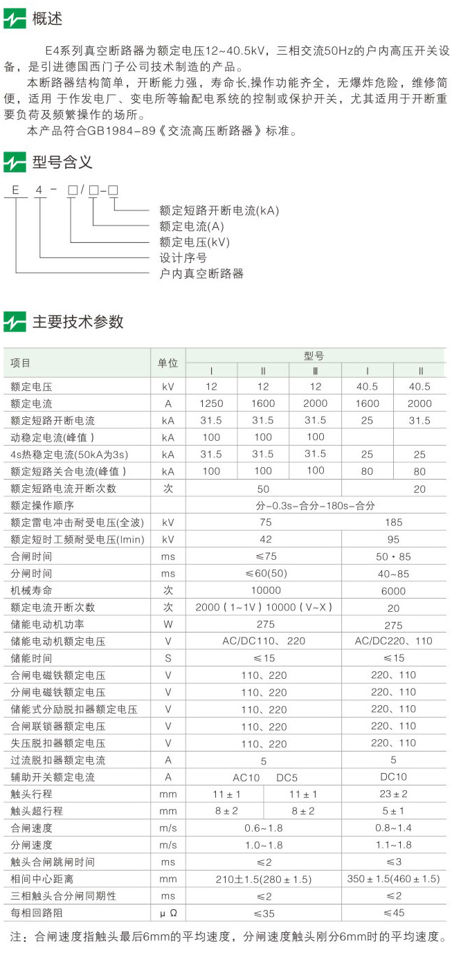 E4-1240.5戶(hù)內(nèi)高壓交流真空斷路器